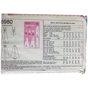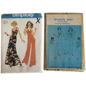 1975 Simplicity Sewing Pattern 6980 Summer Dress Top Wide Leg Pant Size 14 Uncut