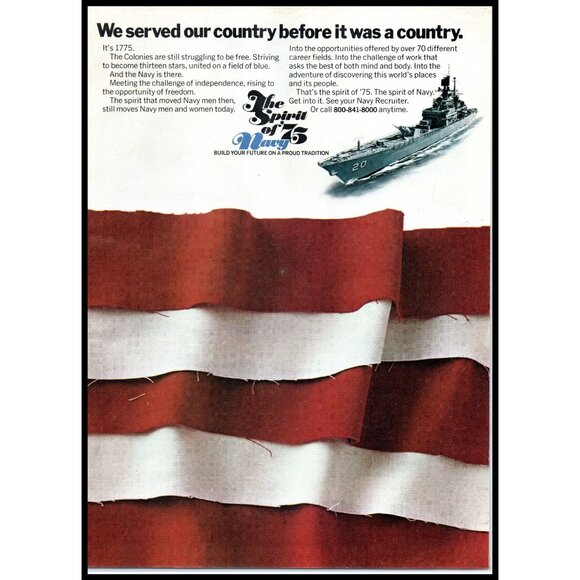 1975 US Navy Recruiter Recruiting Vintage Print Ad Sewing Flag Stripes Wall Art