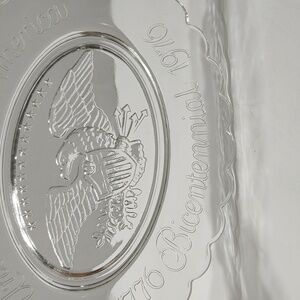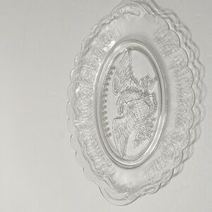 Vintage 1976 Avon, Bicentennial Oval Scalloped Edge Dish - Beautiful patriotic vintage piece with embossed eagle and shield on crystal clear glass, in great condition, No Chips, cracks or scratches.