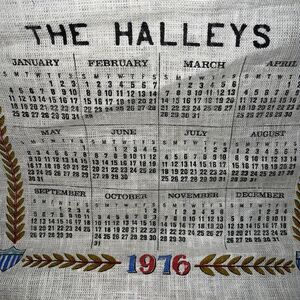 Add a touch of vintage charm to your kitchen with this 1976 calendar towel. Celebrating the BiCentennial 200 Years of Freedom, this rectangular linen kitchen towel features a charming Americana pattern with farm life and patriotic themes. Measuring 29 inches in height and 16 inches in width, this one-of-a-kind piece is perfect for all occasions.