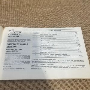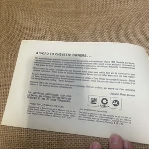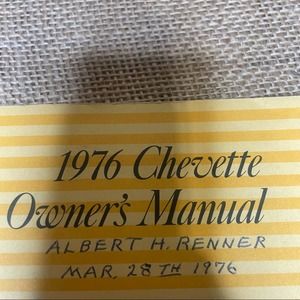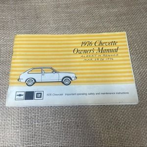 Vintage 1976 Chevette Owners Manual in good preowned condition. Some wear marks to outside cover (writing present.) All pages are intact.