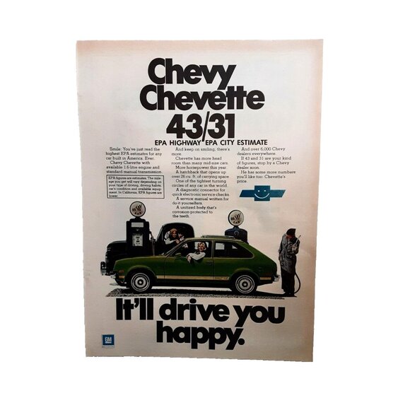 1976 Chevy Chevette It Will Drive You Happy Green Color Car Original Print Ad