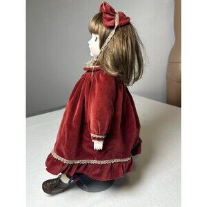 The 1976 Claudie et Claude Musical Porcelain 18" Doll Monsieur Giraud is a vintage girl doll with wavy hair made of porcelain, standing at 15 inches tall.