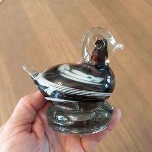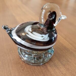 1976 Enchanted Glass Carlsbad Bird Paperweight Figurine Duck Purple Swirl.