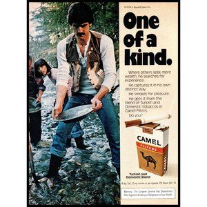 1977 Camel Cigarettes Vintage Print Ad Gold Panning Mining River Wall Art Photo