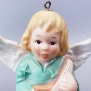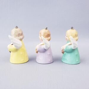 1977 Goebel Green Angel With Lute Bell Christmas Tree Ornament Lot of 3