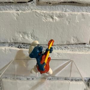 1977 Vintage Smurfs Guitar Player Smurf Figure Schleich Peyo Hong Kong 2" PVC