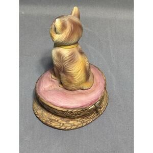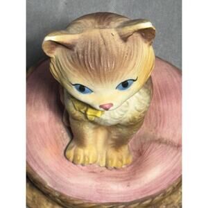 1978 Gorham Kitten Cat 4.5" Music Box Tie a Yellow Ribbon Vintage Japan