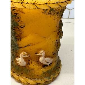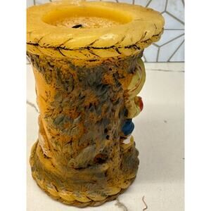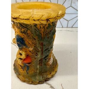 Add a charming vintage touch to your collection with this hand-painted Alpine Originals candle (wick still intact), crafted in 1978 in the British Crown Colony of Hong Kong for CMA, Inc. This whimsical 4x3-inch candle features a heartwarming traditional scene of two children playing music, set against a textured, tree stump-inspired design with geese on the back. The original label remains intact on the bottom, marking its authenticity and nostalgic appeal. A unique find for collectors of vintage décor, hand-painted candles, or Hong Kong-made treasures! Perfect for display or as a thoughtful gift.