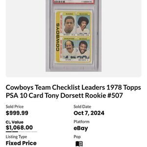1978 topps tony dorsett-drew pearson #507 mint condition