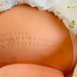 Vintage 1978-1982 1985 Xavier Roberts Cabbage Patch Kids Doll Preemie Coleco CPK Doll Cabbage Patch Kids by Coleco Industries Inc. - Head mold # 3 - Gray signature on butt cheek (1985) - Tag SS 1978,1982 - Rare green eyed preemie &one dimple. - white clothing with yellow flowers floral design with matching hat. Possible transitional doll