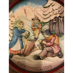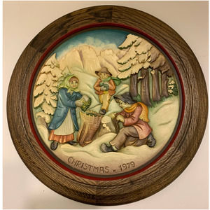 1979 Anri Woodcarving Christmas Framed Plate The Moss Gatherers of Villnoess