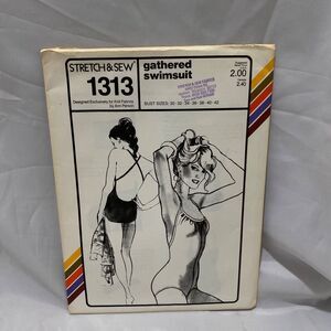 1979 Stretch and Sew Gathered Swimsuits Design Patterns by Ann Person. well-kept condition for its age. No major damage. May have Some wear from use and storage but still in good condition. Many of the fabric patterns have been written on or used. But still can be used for fabrics or props in videos or movies.
