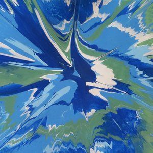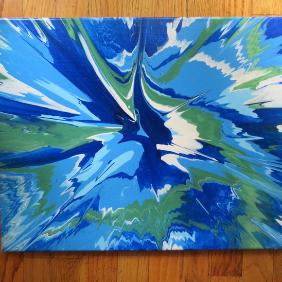spin art Acrylic on canvas All the sides are painted, you don't need a frame. Each painting is sealed. There is a back hanger, you can place it which ever way you want the painting hung.