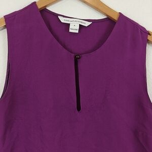 $198 DIANE VON FURSTENBERG Purple Alexandrie Sleeveless Silk Ruffle Top P, Small