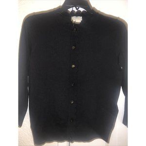 $198 Kate Spade NY Women's Black Silk Cashmere Scallop Cardigan Sweater Size XS.