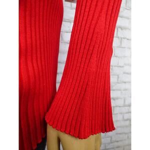 $198 MLM Label Red Ribbed Long Bell Sleeve Off Shoulder Indiana Sweater M NWT