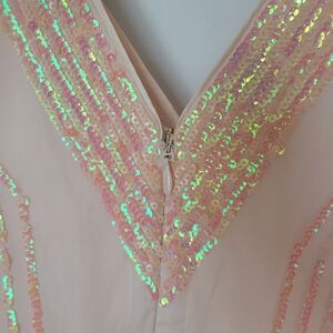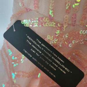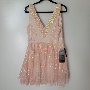 $198 NEW XL BEBE PEACH PINK TULLE SEQUIN SLEEVELESS FIT FLARE MINI DRESS NWT