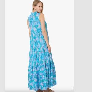$198 NWT LILLY PULITZER MALONE MAXI DRESS LAS OLAS AQUA STRONG CURRENT SEA LARGE