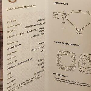 1.98 carat Fancy Light Yellow Lab Diamond Square Cushion Modified Brilliant