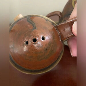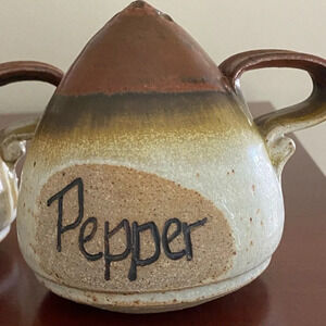 1980 Greg Wooten Indian River Pottery Brown Organic Earth stoneware Salt Pepper