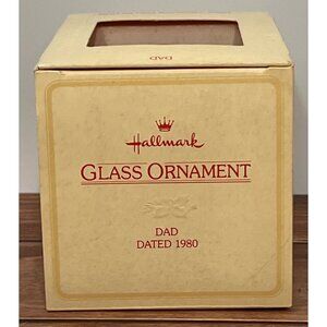 This Hallmark Glass Ornament from the Tree-Trimmer Collection, dated 1980, celebrates Dad with a classic design. It embodies nostalgia and family warmth with its plaid pattern and heartfelt message, making it a thoughtful gift or collectible item.