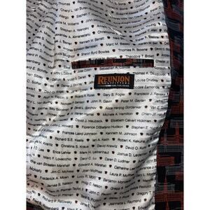 This Princeton University 1980 25th Reunion jacket is in excellent pre-loved condition! All measurements are in the photos. This is a black blazer that has overlapping images of Nassau Hall on a black background. The graduates names are printed inside the jacket. This is a one of a kind piece!