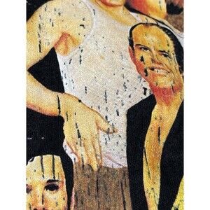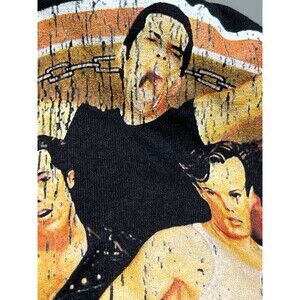The 1980 Sha Na Na Band T Shirt is a vintage piece featuring a graphic print of the iconic band. Made of cotton in a classic black color, this short sleeve shirt with a crew neck is perfect for any music lover looking to rock out in style. A comfortable and flattering choice for men who appreciate vintage fashion and nostalgic music references. Made in the United States, this original graphic tee is a must-have for any fan of the Sha Na Na band and 80s music. NOTE THERE IS NO SIZE TAG IN THE SHIRT. THERE ARE MEASUREMENTS FOR PIT TO PIT, SHOULDER AND LENGTH. CANNOT BE RETURNED FOR FIT. PLEASE REVIEW TO ASSURE FIT FOR YOU. IT APPEARS TO BE LARGE TO X LARGE. ALSO PRINT ON SHIRT HAS BLACK STREAKS THROUGHOUT. THIS IS NOT FROM WEAR BUT RATHER HOW IT IS DESIGNED.