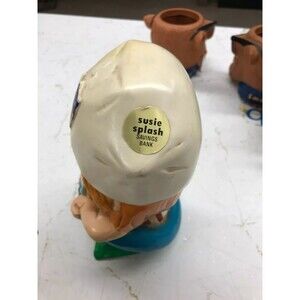 1980 Susie Splash Swim Team Bank Niagara Plastics Erie, Pa. 8" Tall Vintage Rare