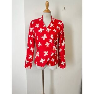1980 UMI Collections Anne Crimmins Red and white floral pattern cotton blazer