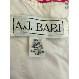 1980 Vintage AJ Bari Pink White Geometric Ruffle Tiered Knee Length Dress Size 4