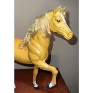 Vintage Barbie Palomino- Preowned - does have signs of wear consistent with age and use. Most wear is scuffs on hooves. Measures approximately 11” in height and 11” in length. Please see all photos and feel free to ask if you have any questions.