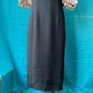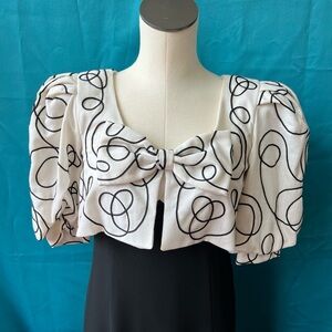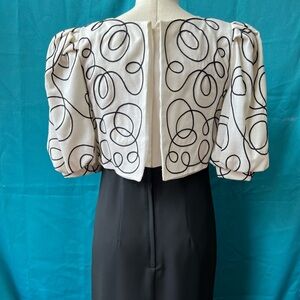 Beautiful vintage Cream top with black swirl design and a bow with a simple long pencil bottom.