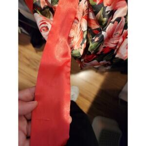 his Victoria's Secret floral satin robe exudes timeless elegance with its vibrant red and black floral design. Made from 100% polyester, this vintage kimono-style robe features a shiny satin finish, a red trim, and a matching fabric belt for a snug fit. The robe is labeled as "One Size Fits All" and is perfect for lounging in style or gifting. The lush floral pattern adds a bold yet feminine touch, while the lightweight material ensures a soft, comfortable feel. Made in Malaysia, this piece captures the iconic luxury of Victoria's Secret vintage collections.