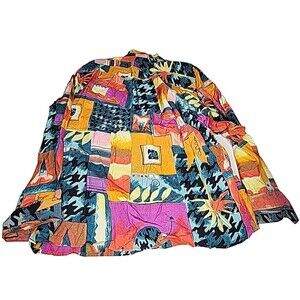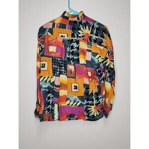 This vintage 1980's outfit set from The Limited includes a bold and abstract colorblock patterned skirt and a matching button-down shirt. The set is designed for women in a size XS and features long sleeves. The multicolor design adds a retro touch to the outfit, making it a standout choice for a stylish and unique look. Perfect for adding a pop of vintage flair to any modern wardrobe, this two-piece set is a versatile and eye-catching option for fashion-forward individuals.
