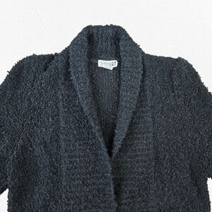 1980s Black Boucle Knit Shawl Cardigan Minimalist Wool Blend Jacket Size Small
