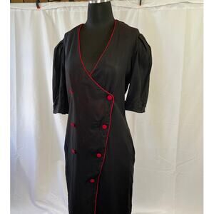 1980s Black Red Trim Wiggle Dress by Cactus NYC – Size 14 – Pinup Style