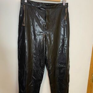 Vintage 1980s black pleather snake print pants. High waisted, mom style, skinny ankle. Excellent condition. Waist measures approximately 14.5” flat across. (E2)