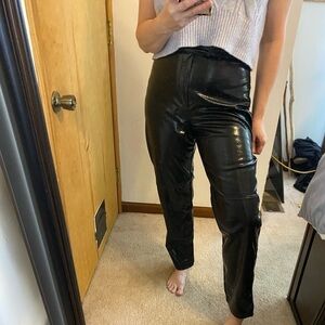Vintage 1980s black pleather snake print pants. High waisted, mom style, skinny ankle. Excellent condition. Waist measures approximately 14.5” flat across. (E2)
