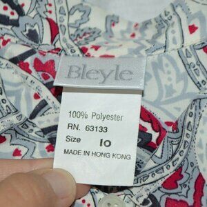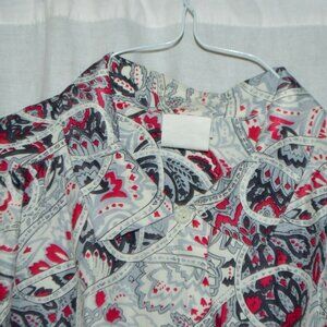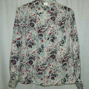 1980s Bleyle Pink Gray Paisley Polyester Button Down Blouse Size 10 Shoulder Pad very little wear - estate fresh