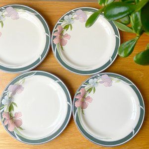 These rare find pastel vintage salad plates are part of the Evening Song Collection by Sango. In good condition with no chips or cracks!