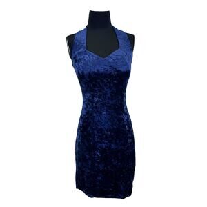 1980s Blue Velvet Halter Mini Dress – Crushed Stretchy Velvet Club Dress