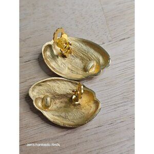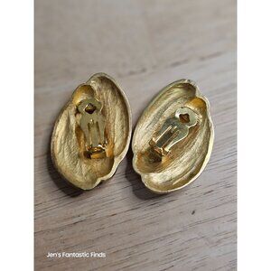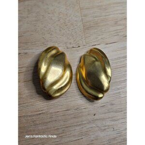 These 1980's Unsigned Brushed Gold Runway Couture Clip Earrings embody vintage charm. Their gold color and clip-on style make an bold fashion statement. Perfect for adding sophistication to any outfit.