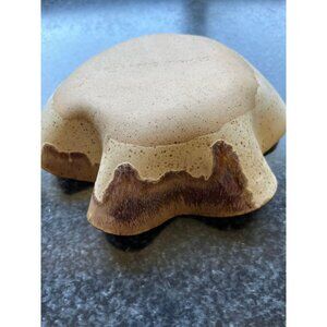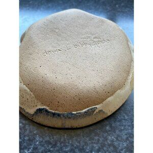 Vtg 1980's Ceramic Trinket Dish Handmade Signed By Artist Unique Shape Blue Brown Beige 6"