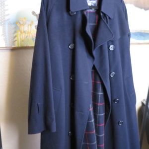Authentic 1980's Vintage Burberry Wool Overcoat. Navy. Size 8-12. This coat is in excellent condition!! The only thing with a little wear is the buckle, which is presented in the photos. Burberry was called Burberry's until 1999, hence this coat's tag. The liner is 100% wool, the outer shell is 80% wool and 20% alpaca. The length of the coat is 46 inches, sleeve length 23.5 inches. There isn't a size, but it fits anybody from size 8-14.