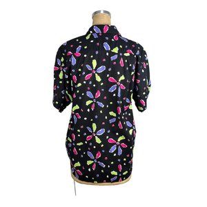 1980s Esprit Sport blouse shirt abstract flowers neon colors Size M/L