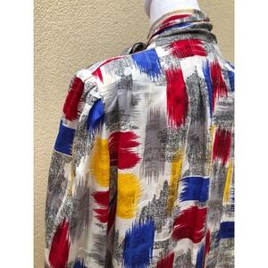 1980's Francesca of Damon for Starlington red blue yellow abstract silk blouse