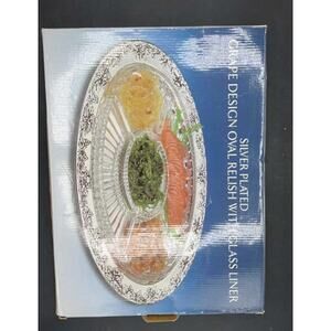 1980s Godinger Silver Plated Grape Oval Relish Tray w/ Glass Insert 16x12 VTG