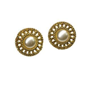 Circa 1980s Vintage Earrings. Stunning Pearl Earrings with Gold Caging Twee Glam Granny Core Beautiful Pearl Earrings. Costume Jewelry. Stamped on Back. No Earring Backs Included Approx. 1"