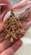 Celebrate the festive season with this elegant gold Christmas tree brooch. Adorned with vibrant red, green, and white accents, it's a perfect accessory for holiday gatherings.